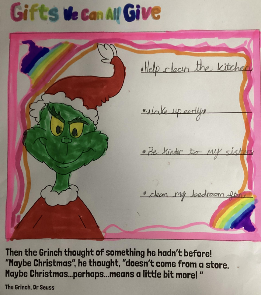 The children in school explored the real meaning of Christmas through the Grinch Challenge.
