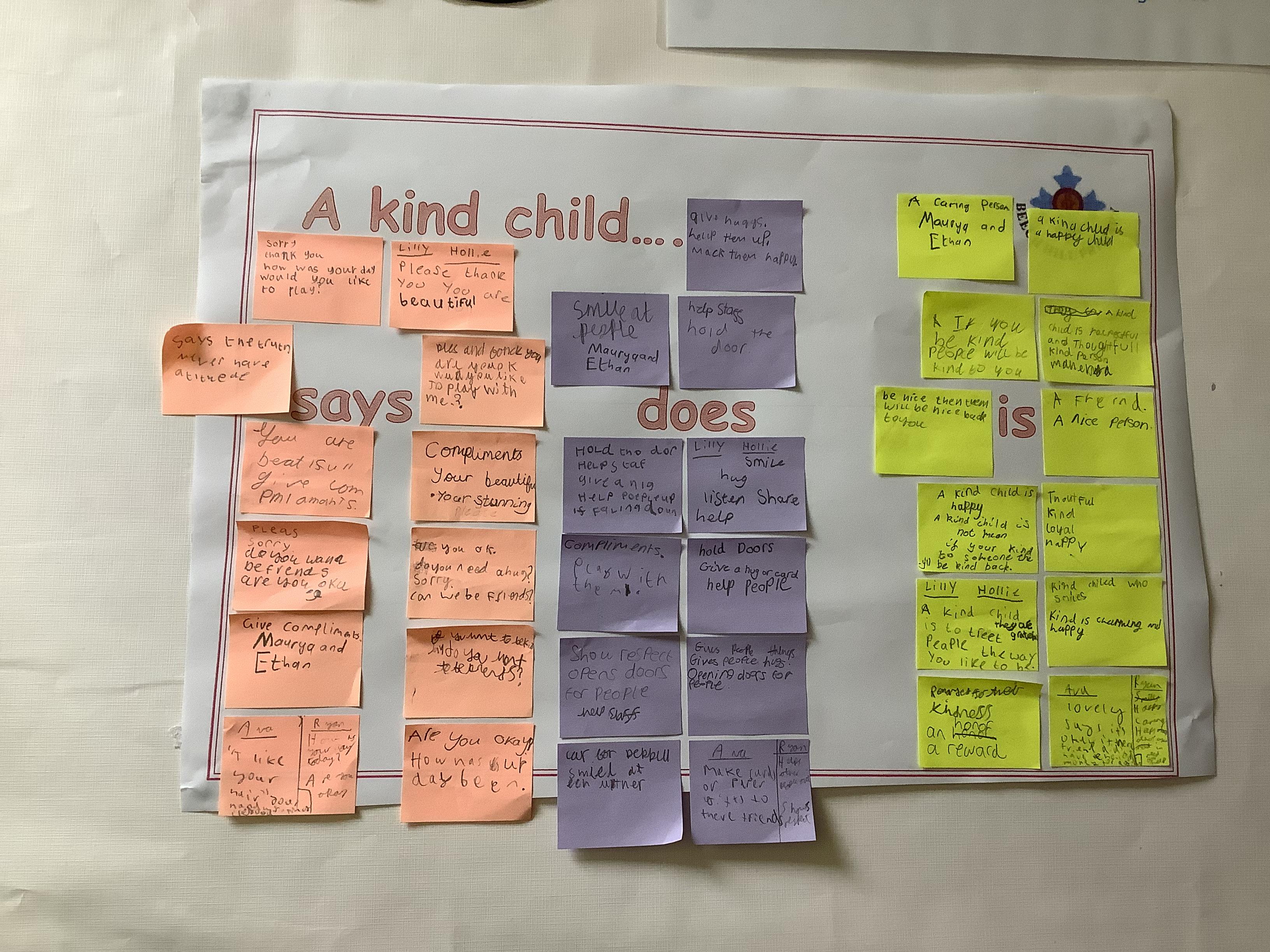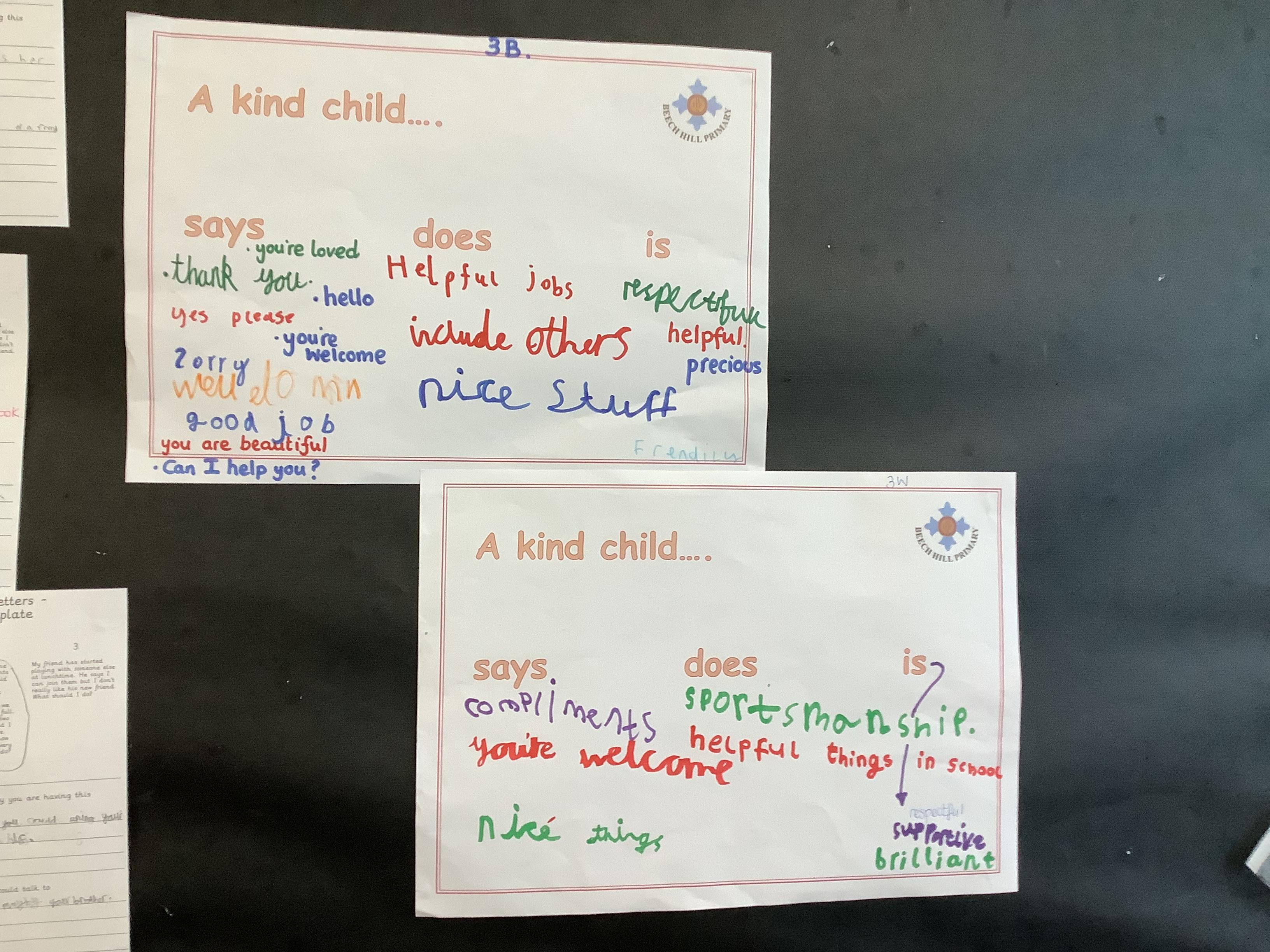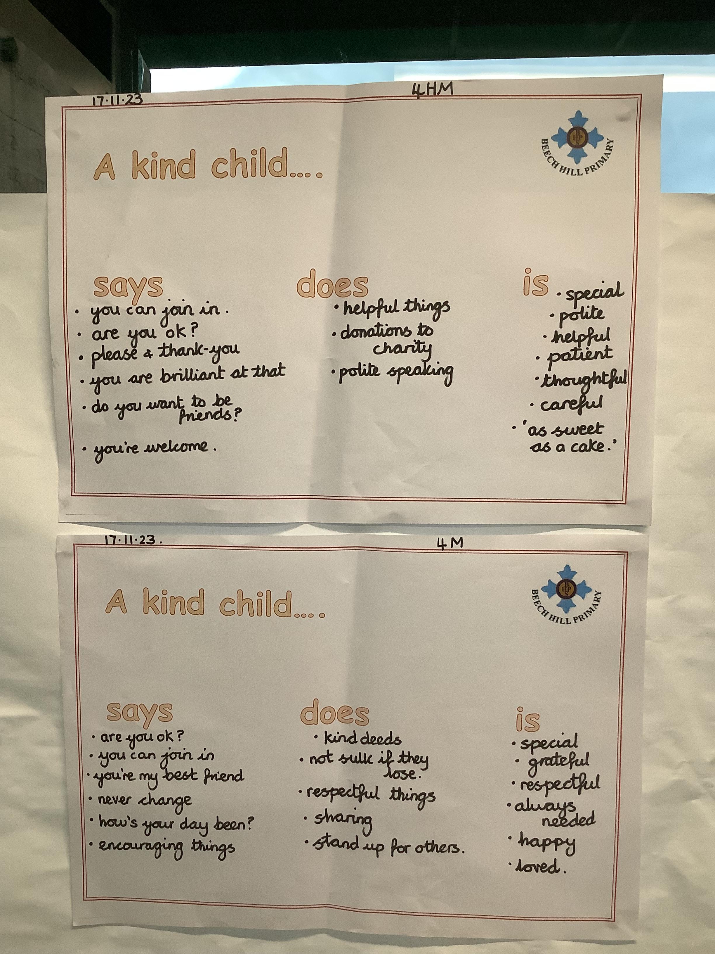 Across school we have explored many different elements of kindness, we looked at 'a kind child'. What might they say? do?