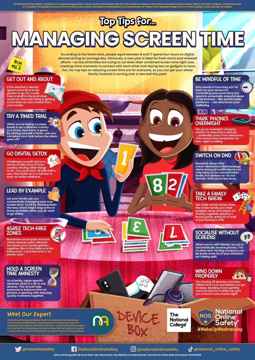 Please download the following advice from National Online Safety about managing your child's screen time. This may be especially useful if your child received a new device for Christmas.