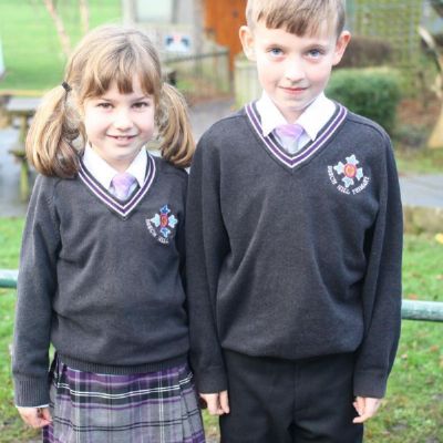 Our school uniform consists of a grey school jumper with a purple trim; white shirt; a clip on school tie and grey trousers or a kilt. Black shoes should be worn and should be school shoes rather than trainers, especially those with bright trims. Heels are not advisable for safety reasons as children will be running around at play time while in the summer; sandals should have a closed toe.